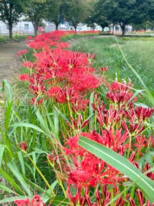 先日、新宮の彼岸花まつりに伺いました。あたり一面に咲いた真っ赤な彼岸花がとてもきれいで、つい見入ってしまいました。