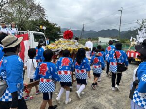 子ども神輿やだんじりなど、地域一帯がお祭り一色となった一日でした。祭りの主役は、やはり子どもたちです。元気いっぱいに声を上げる子、恥ずかしそうにしながらも一生懸命参加する子、その一人ひとりの姿に心が温まりました。