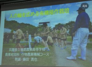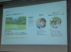里山の竹や牡蠣殻を土づくりに使ったり、福祉、食育や給食、体験活動、環境保全、景観はじめ、地域農業に関わる分野や人を拡げていくことが求められます。有機農業はその裾野の広さからモデルになるのではと思います。